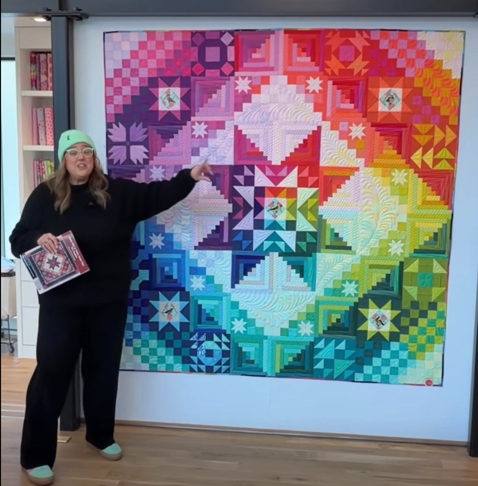Amish With a Twist is a striking modern quilt design originally created by Nancy Rink, celebrated for its bold Amish-inspired geometry and graphic simplicity—reimagined in a vibrant, Tula Pink–inspired color story.