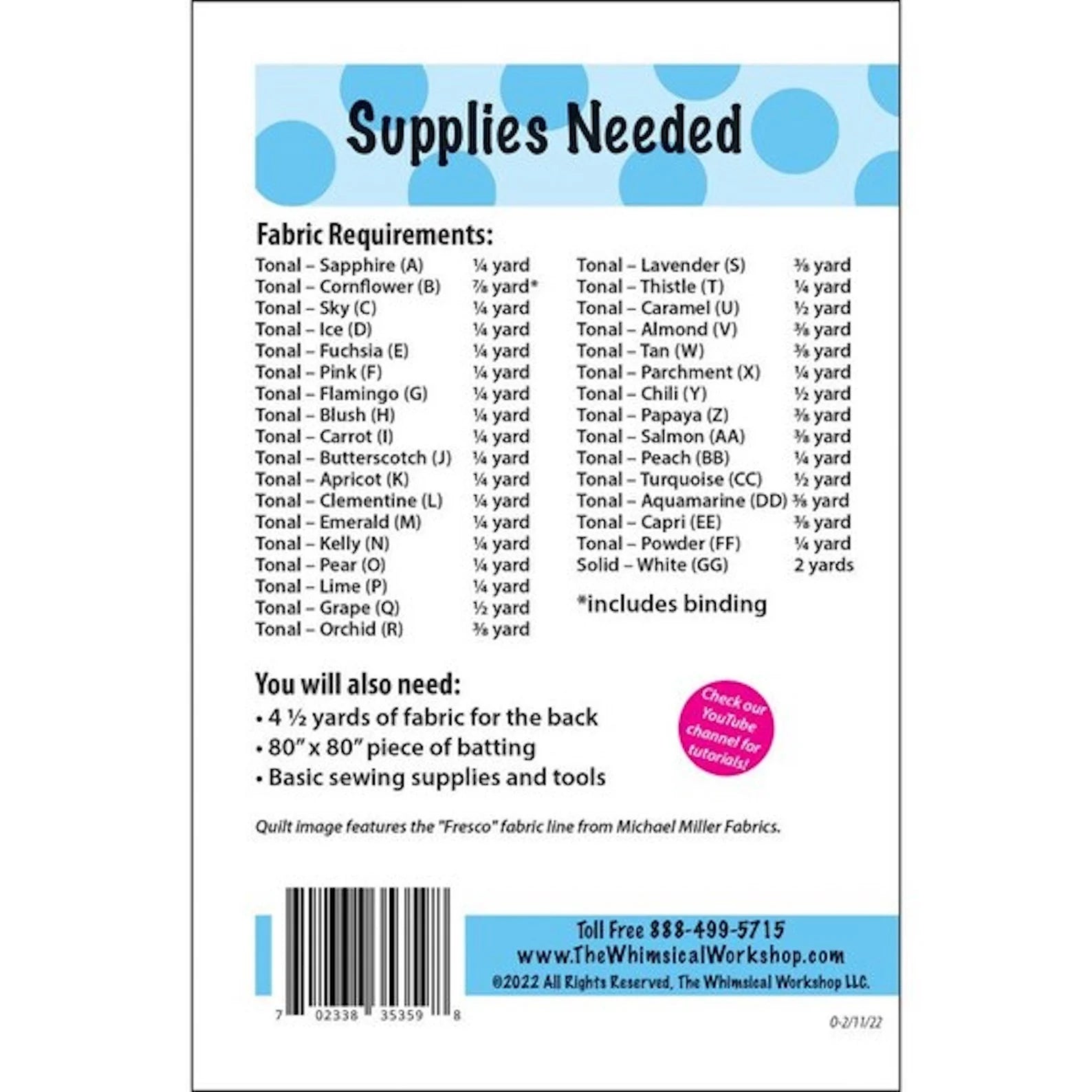 NOTE: Quilt patterns are not returnable, refundable or exchangeable.